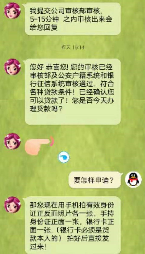 编者推荐:近日,有客户向我司反映,有不法分子假冒我司拨打诈骗电话,通过QQ聊天工具骗取客户信息,与客户在网上签订虚假贷款合同,实施网络诈骗。